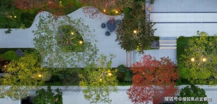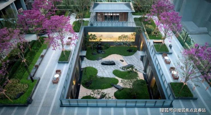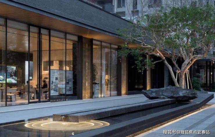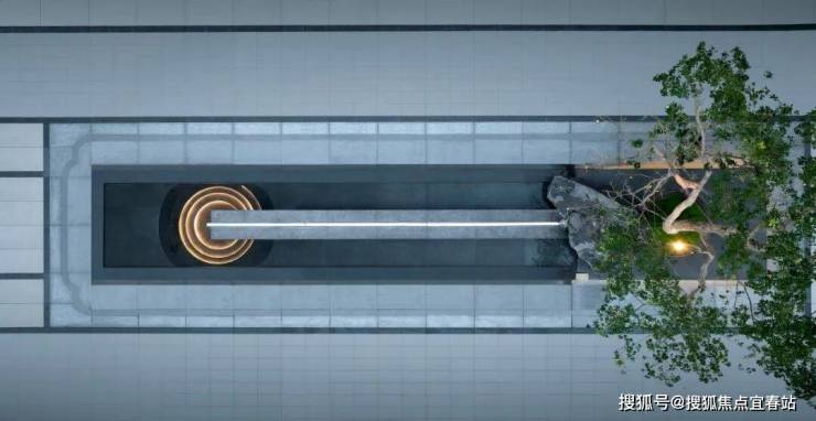 整个入口轴线空间采用悦字系“东方礼序,一园三堂”的空间设计,前门堂、侧厅堂、后轩堂围合的下沉庭院,以中心“高山流水”“抚琴台”为场景标签,打造禅意高山流水、小桥流水潺潺的诗意景观。“一方之庭,纳万千山水。”