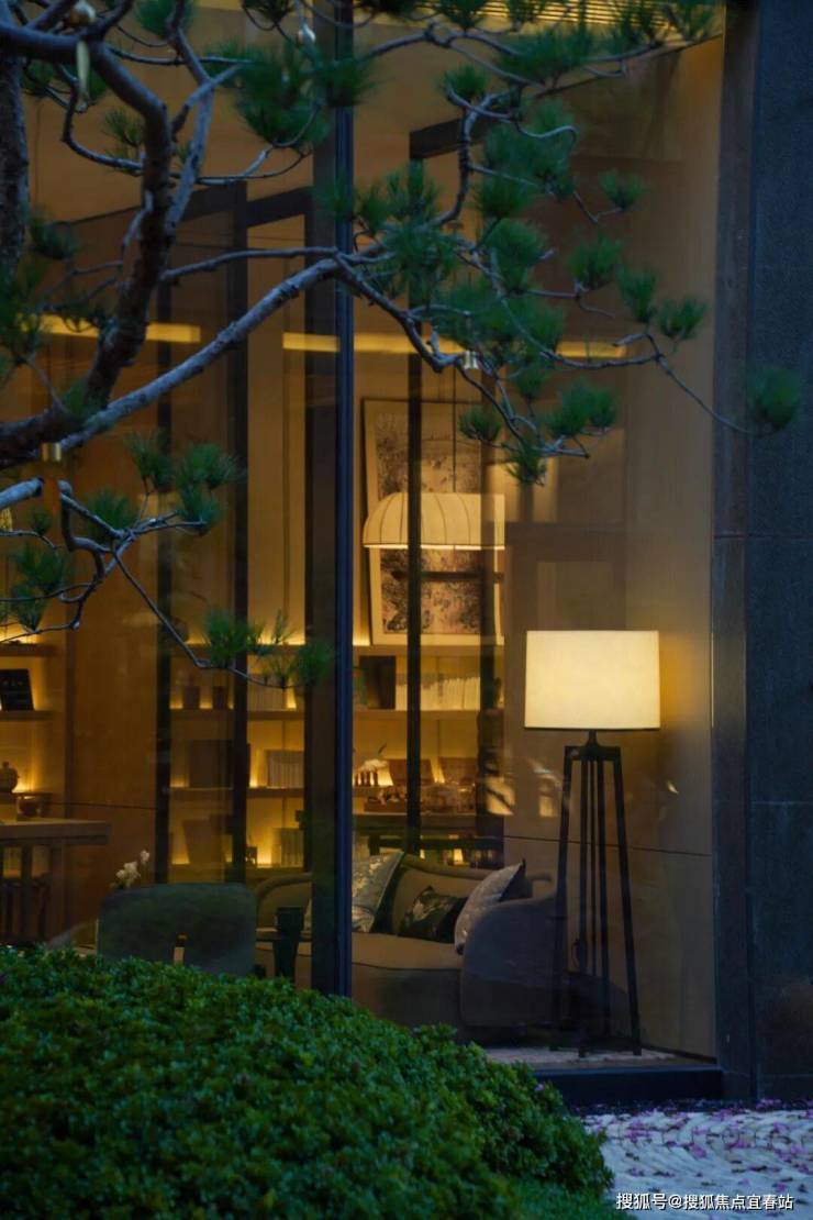 “高山流水遇知音,西晋风流付松林。” 下沉庭院精选7棵松树,松取自深山中受自然滋养的山松,七棵松树寓意“松林七贤”,造型古雅、形态各异,代表的是中国文人志向高远的气节。