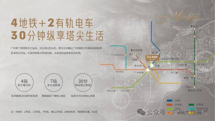 通过2号线、22号线、广佛环线、海珠湾隧道等多维交通,珠金琶、白鹅潭、海珠,全都能直达。
