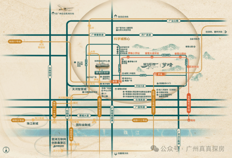项目所在的科学城芯区府板块,地铁6号线香雪站就在附近,规划中的地铁23号线也将在家门口设站,在提供便利出行的同时,更拉近其与中心城区之间的距离。有轨电车1号线和2号线(在建中)贯穿左右,将打通黄埔区内部的交通壁垒。有轨电车2号线建成后,可与有轨电车1号、5号线路换乘,无缝接驳地铁6号线、13号线,为广大萝峰街坊提供多一种出行方式。
