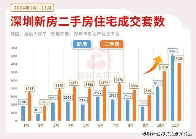据公布的数据,11月,深圳新房网签8076套,二手房网签7125套,合计网签超1.5万套。