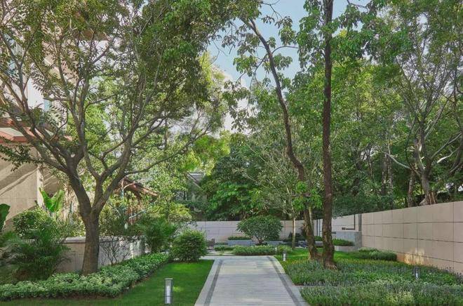 S2「盈水阁」庭院以度假酒店安宁、平静、私密的艺术景观创作为蓝本,结合白云山原始自然风光,采用现代风格的设计手法,注重生态,适度整改,在不破坏整体自然环境下,进行多维度的景观营造;打造出独一无二的“盈水阁六景”;层层递进,移步换景,营造出自然、隐奢的居住体验;六大主题花园,移步换景,让归家充满浓浓的仪式感,享受一种真正的城市秘境庄园生活。