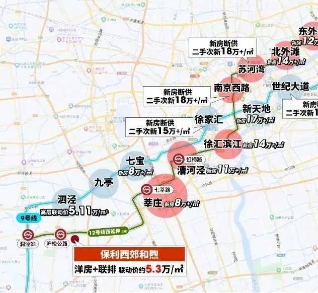 12号线西延伸段于2022年6月获得批准,同年12月迅速启动建设,这仅仅用了半年的时间,充分彰显了政府发展洞泾区域的坚定意志与迫切需求。12号线(包括在建的延伸段)横贯莘庄、七宝、漕河泾、徐汇滨江、内环核心活动区、北外滩、东外滩等重要板块,直至浦东金色中环带的金桥副中心。12号线在能级与量级上均与9号线不相伯仲,为居住者提供了极大的出行便利。