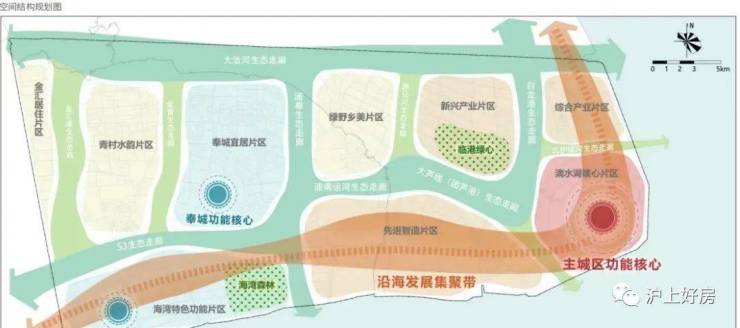 承接临港发展第一站:临港整体沿两港大道向西发展,中部为承接发展第一站