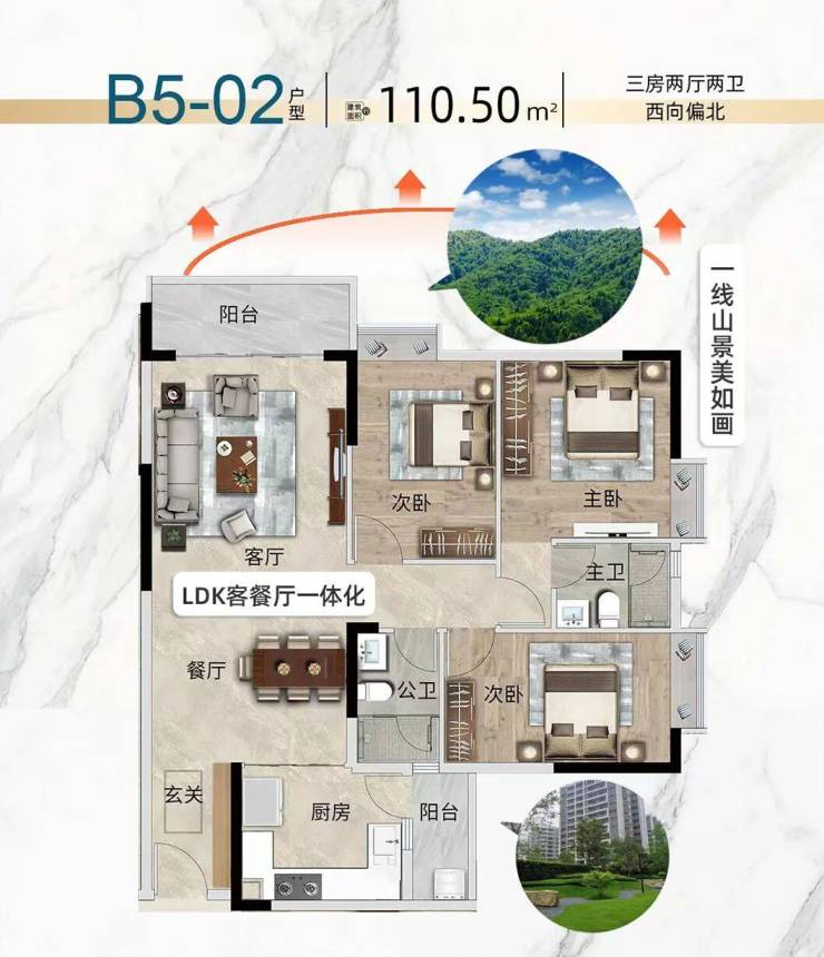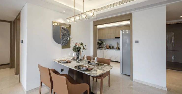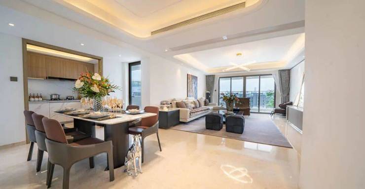 譬如B4栋的建面约110㎡三房空间,大气、开阔是第一感受。