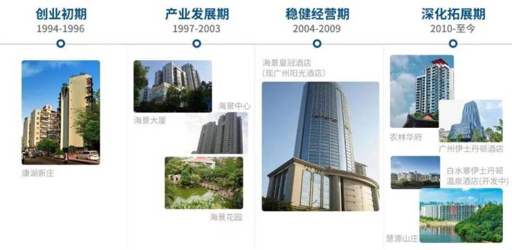 从1994年开始,就在在天河开发了首个楼盘——康湖新庄。29年以来,开发建设的项目就有位于天河、越秀等核心区域的海景大厦、海景中心、海景花园、农林华府等高档住宅。