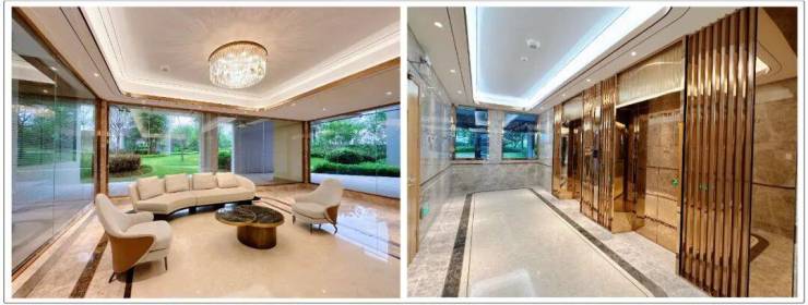 譬如,步入一楼大堂,第一眼感受便是开阔、通透,气派,犹如大型商场般的奢华。大人可以坐在沙发上一边话家常,另一边也可以通过玻璃照看在外玩耍的孩童…