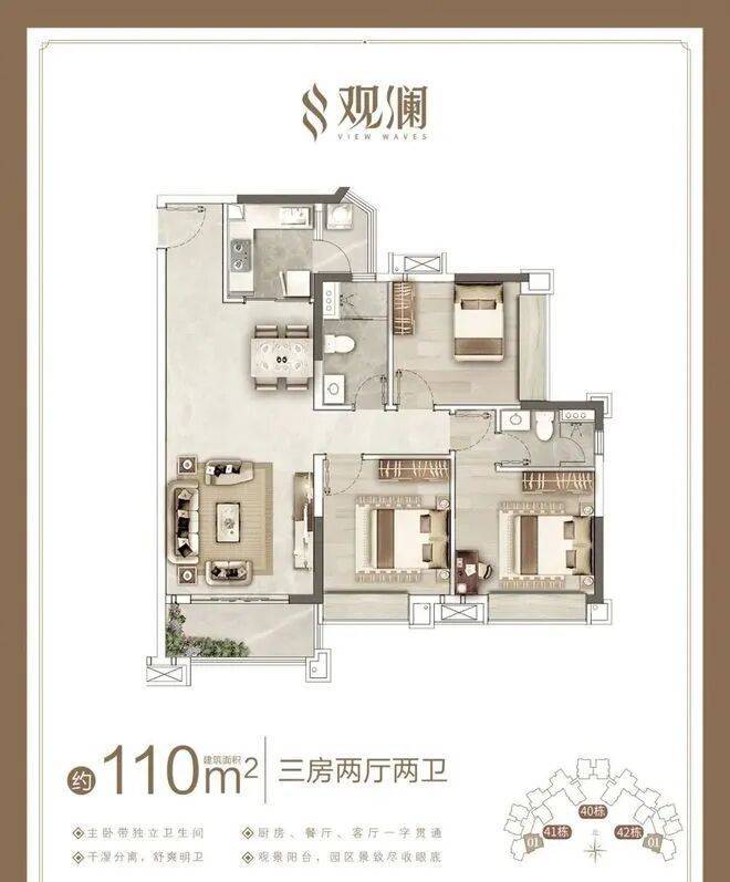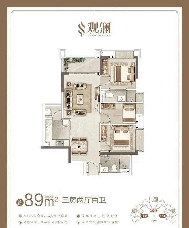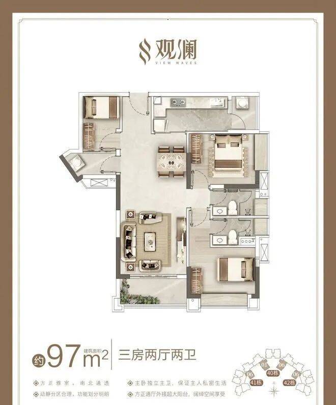这次组团共推出五种户型,分别为89㎡功能性三房两厅两卫,97㎡舒适三房、110㎡奢阔三房/紧凑四房,123㎡舒适四房,全部户型均带主套,适合各年龄层次购房者。