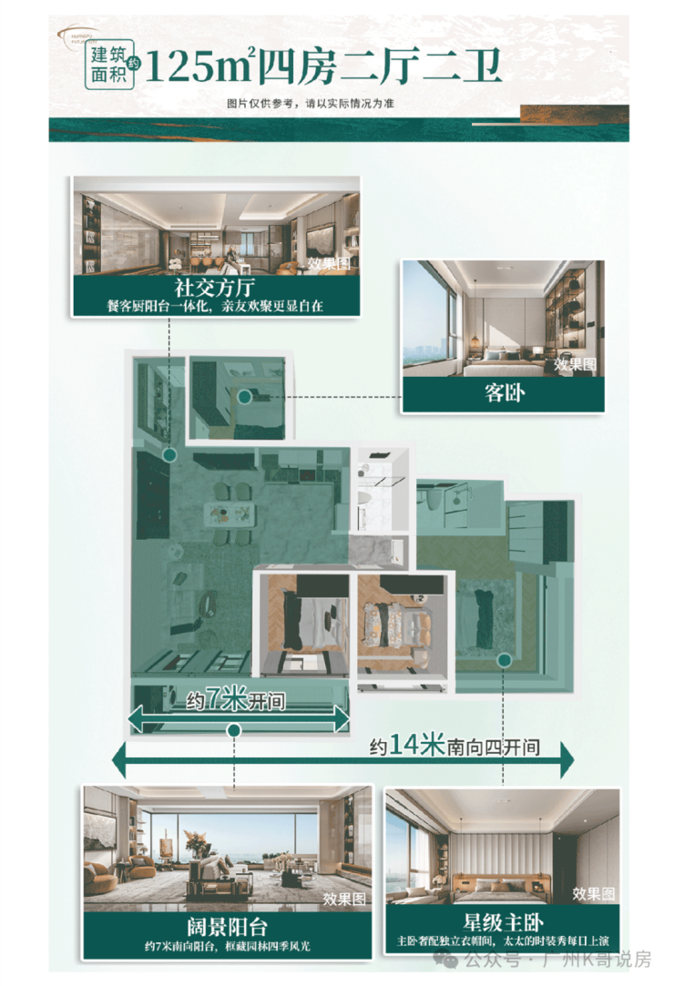 约125平4房2厅2卫,奢享全明电梯厅,让业主每次归家都能被生动的景观、采光包裹,抚平业主归家情绪;