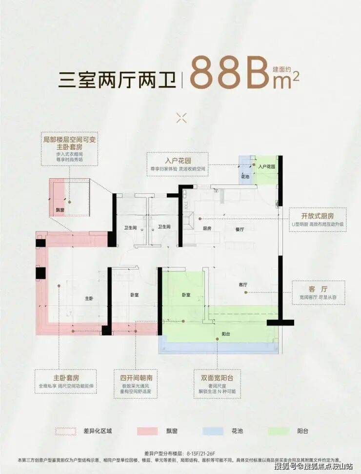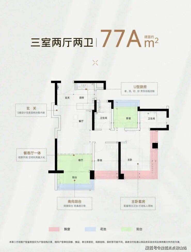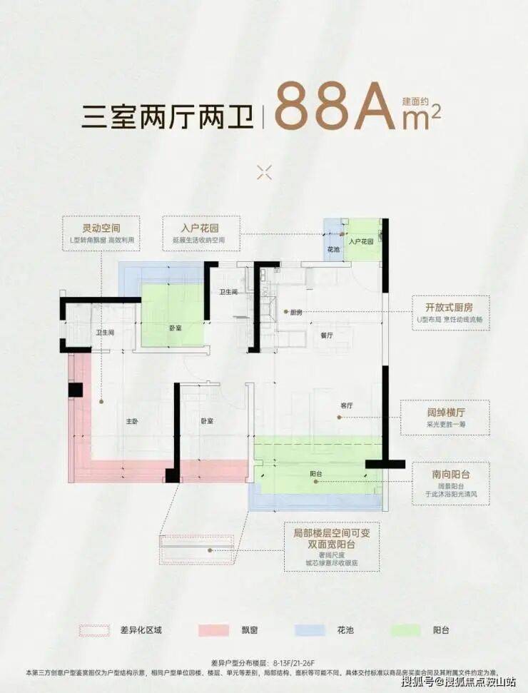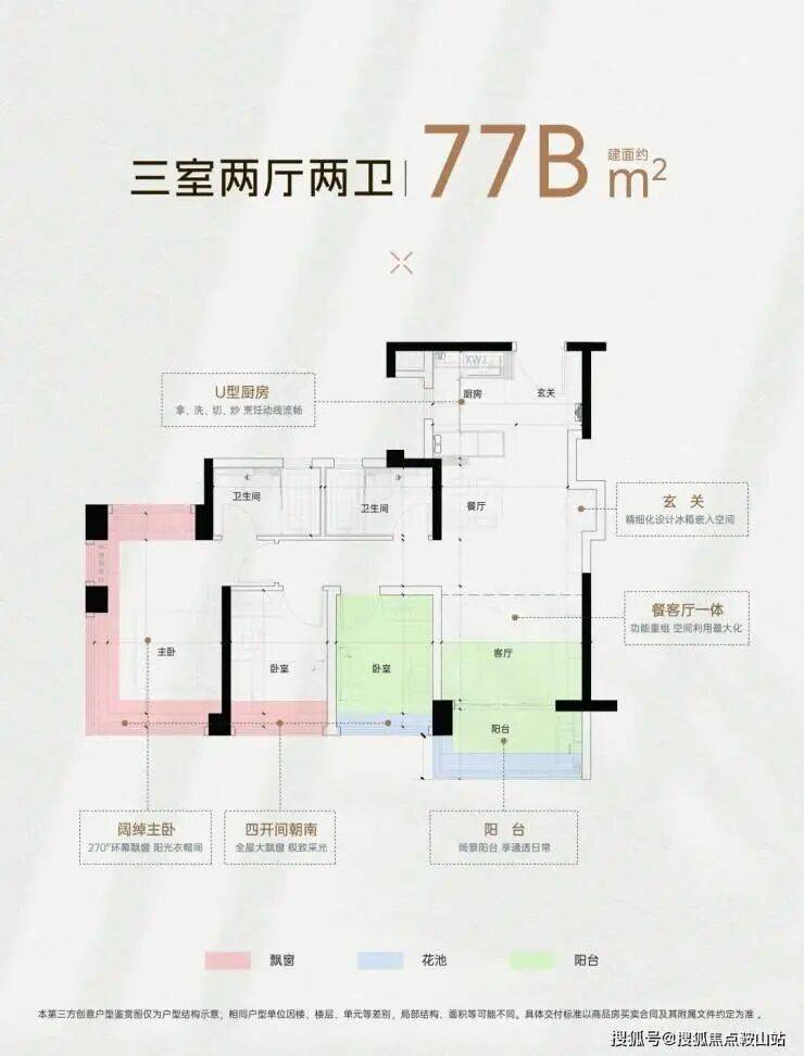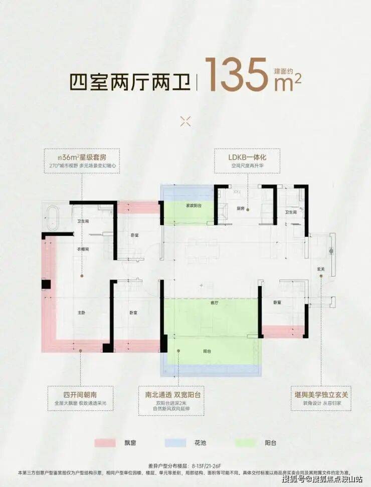 建面约77-135㎡三四房,四面宽南向,三房(最高)享约5米客厅,新规产品约127-137%高使用率,目前8栋做了升级,空间感会更好!