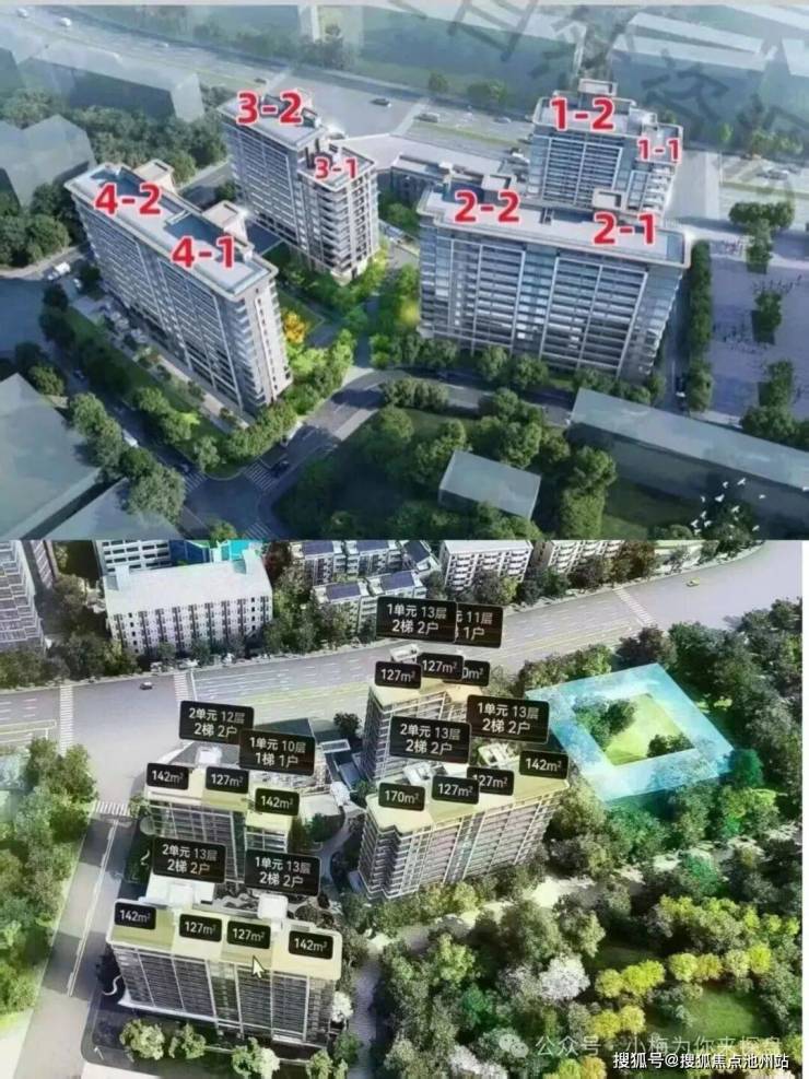 项目一共4栋住宅,均为两个单元的,且所有楼栋建筑高度均不超过40米。这个建筑高度,相当于隔壁华发外滩玺的一半。1号楼1单元为11F,2单元为13F;2号楼1单元为13F,2单元为13F;3号楼1单元为10F,2单元为12F;4号楼1单元为13F,2单元也是13F。项目的3、4号楼为西南朝向,1、2号楼为东南朝向。4栋楼均为2梯2户的设计。