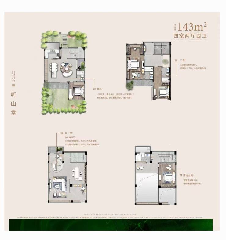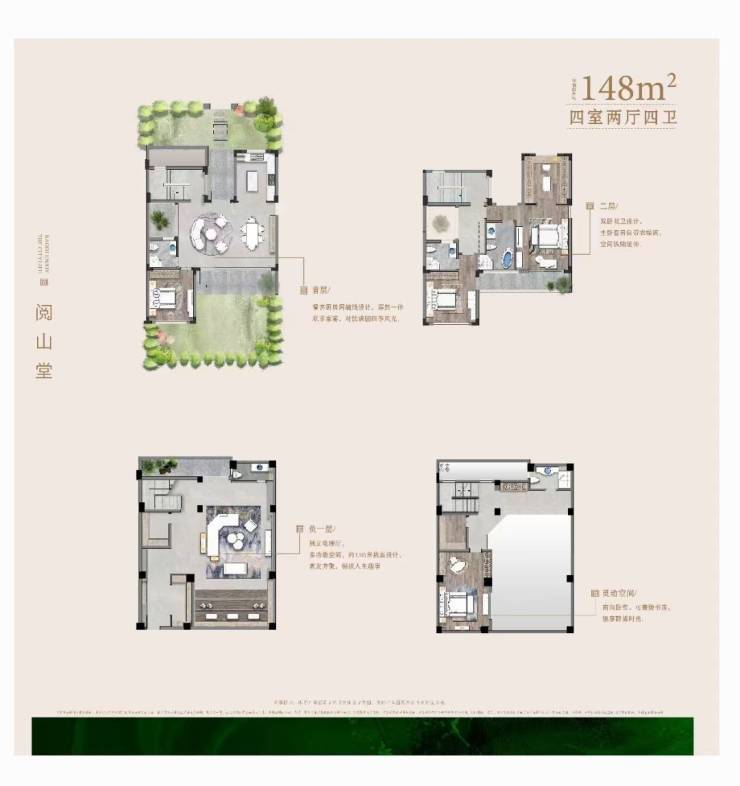 江南颂,地上两层纯联排,敬呈有庭有院有生活。南庭北院,满目花意正浓。负一层约4.95米高(不计容)自由空间,演绎志趣生活。