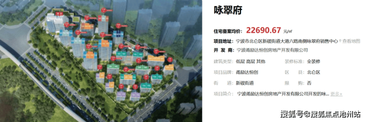 绿城·咏翠府楼盘位于宁波北仑新碶街道泰山路与松花江路交会处,由宁波甬励达恒创房地产开发有限公司精心打造,项目正持续推售中,最新参考价格为25000元/平方米,通过对项目价格、项目户型、交通配套、教育配套、生活配套、小区规划等维度进行分析,绿城·咏翠府楼盘价值评分为9分。