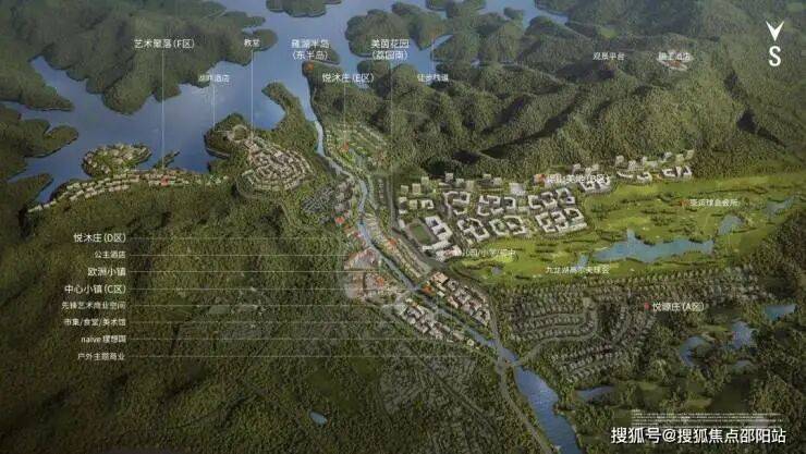 项目重点建设中心小镇C区、艺术聚落F区、伴山美地B区三大园区,并串联现状山地游乐、国王酒店、欧洲小镇与集散中心。