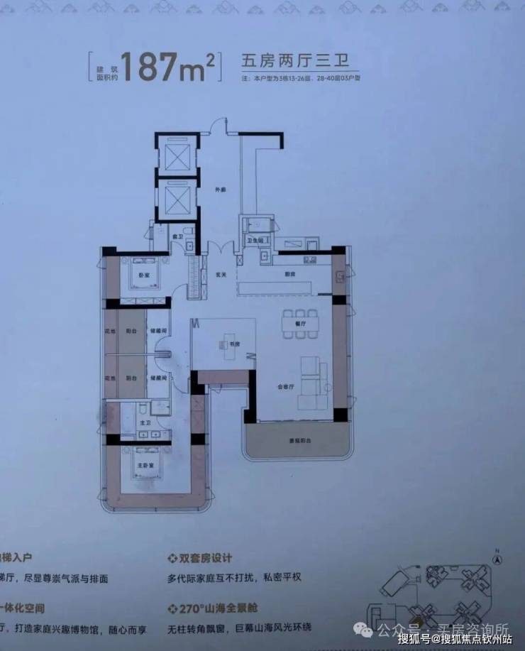 据了解项目首推是3号楼102-111-127-129-146-187㎡,其中103-111户型只有13层以下才有,13层-40层是组合成了187㎡