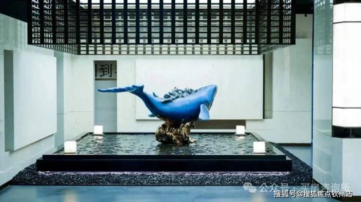 驰骋归家,精工地库以酒店式尊崇礼迎归来。星空顶落客区,以璀璨光影点亮归心之路,而由珍稀蓝翡翠奢石所串联的归家路径,天然纹理如山海交汇的脉络,冷静中尽显奢华。海洋艺术雕塑静伫其间,以灵动形态呼应空间气质。