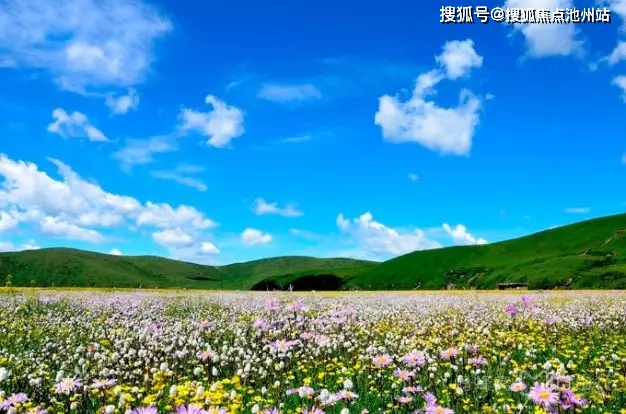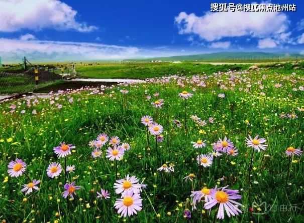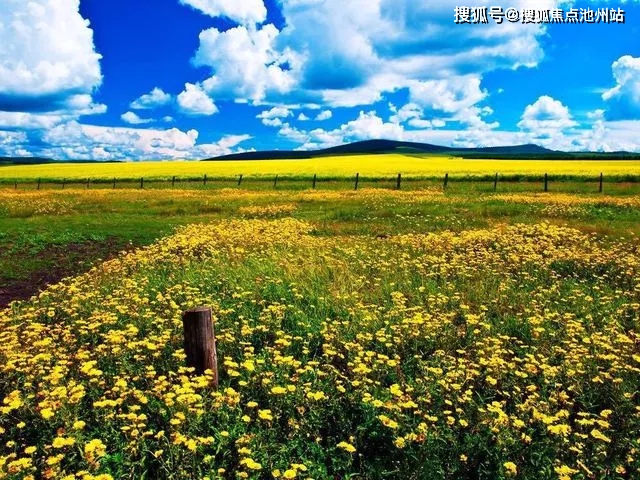 大片花海旁,