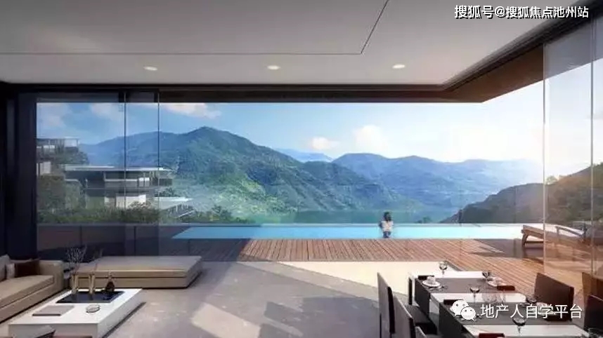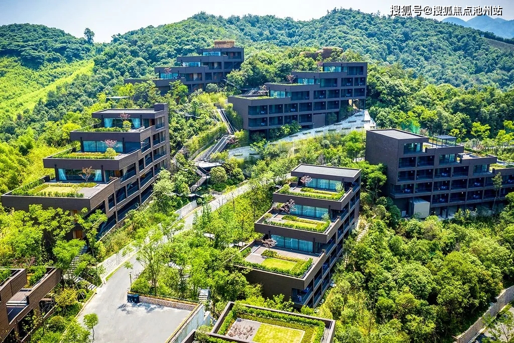 蓝城舍弃了他们以往小镇惯有的江南院子之风格,将他们对自然、对生命的思考倾囊注入,采用极简设计手法,顺山体生长层层退台,同时结合大面积全景式落地窗设计,最终呈现出这一栋栋消隐于山水之间的有机建筑群,正犹如透明化的赖特流水别墅,或者更具生活感的柯布西耶萨伏伊建筑。
