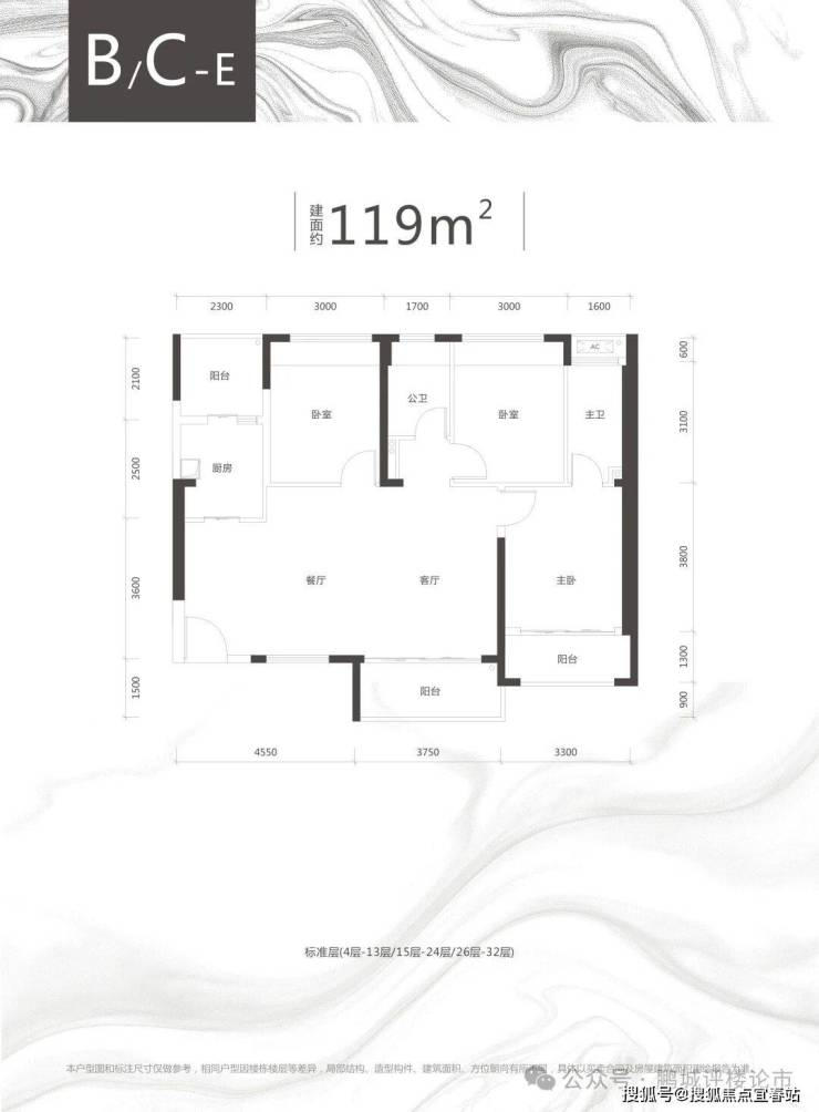 【项目户型鉴赏】C栋B/C/E户型、约118-119㎡三房两厅两卫