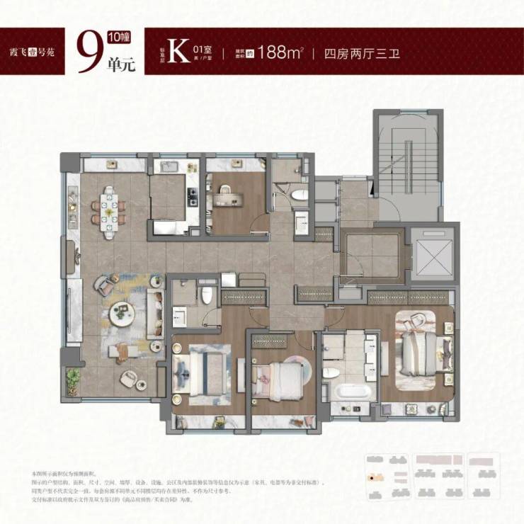 项目已是准现房,将推出建面约100-121㎡的3房和建面约141-188㎡的4房。