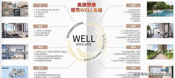 阳光香格里将well健康标准中的空气、水、声音、阳光、运动、舒适、精神和材料八大部分贯彻在住宅的每个角落,这八大健康类别包括包括102项特性,每个特性旨在解决住户健康、舒适性或认识等方面。