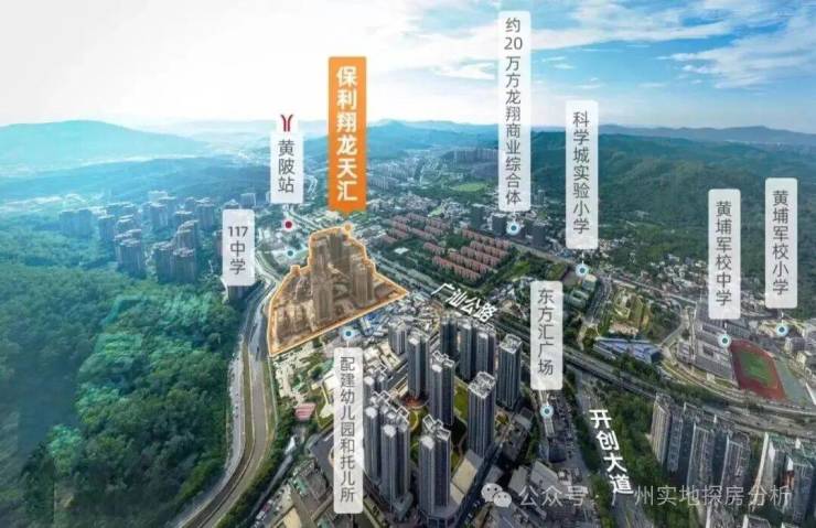项目教育配套:项目配建了一所24班的幼儿园,今年九月开学。紧邻黄埔军校中小学和科学城实验小学(原黄陂小学),小学大概率是在两所之间任选。黄埔军校中小学由广大附中管理,统一纳入大名鼎鼎的黄埔广附教育集团。117中学。