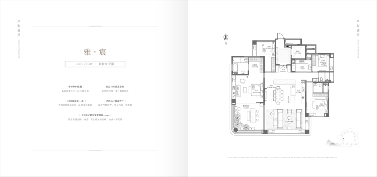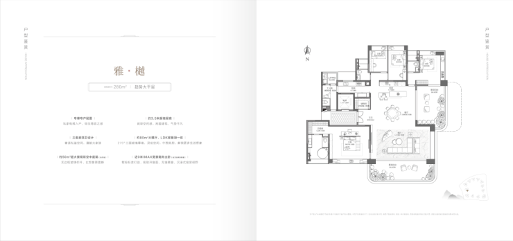大平层产品,最大户型约280㎡,拥有超50㎡双空中观景庭院、超80㎡横厅。