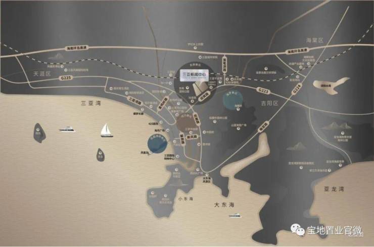 项目位于迎宾大道·东岸总部经济区,距三亚凤凰机场直线距离约11公里,距三亚高铁站直线距离约3公里,距海南环岛高速约4公里(荔枝沟互通),环拥优质医疗教育资源,自然景观丰富,各大醇熟商圈环绕。