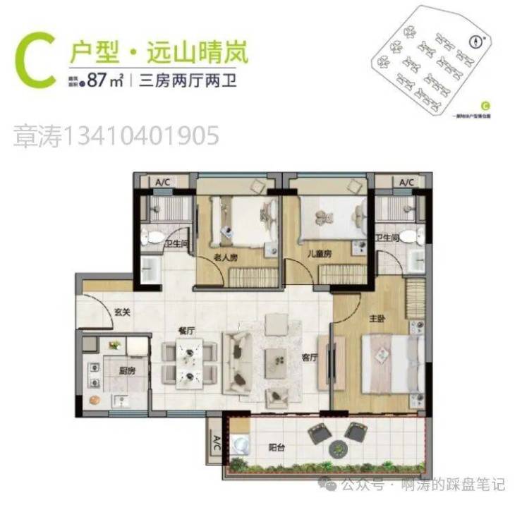 (2)约76㎡,3房2厅真2卫(高层户型)