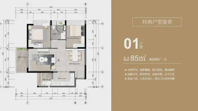 01户型 建面约85㎡ 两房两厅一卫