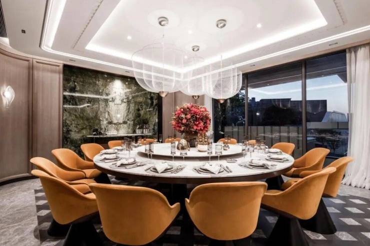 家宴厅设以可容纳16人的圆形餐桌,凝聚家庭温情,诠释圆满之寓意。