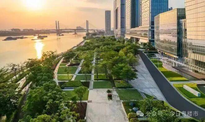 其位于珠江第一排,270°一线南向望江,拥有500米的江景面。