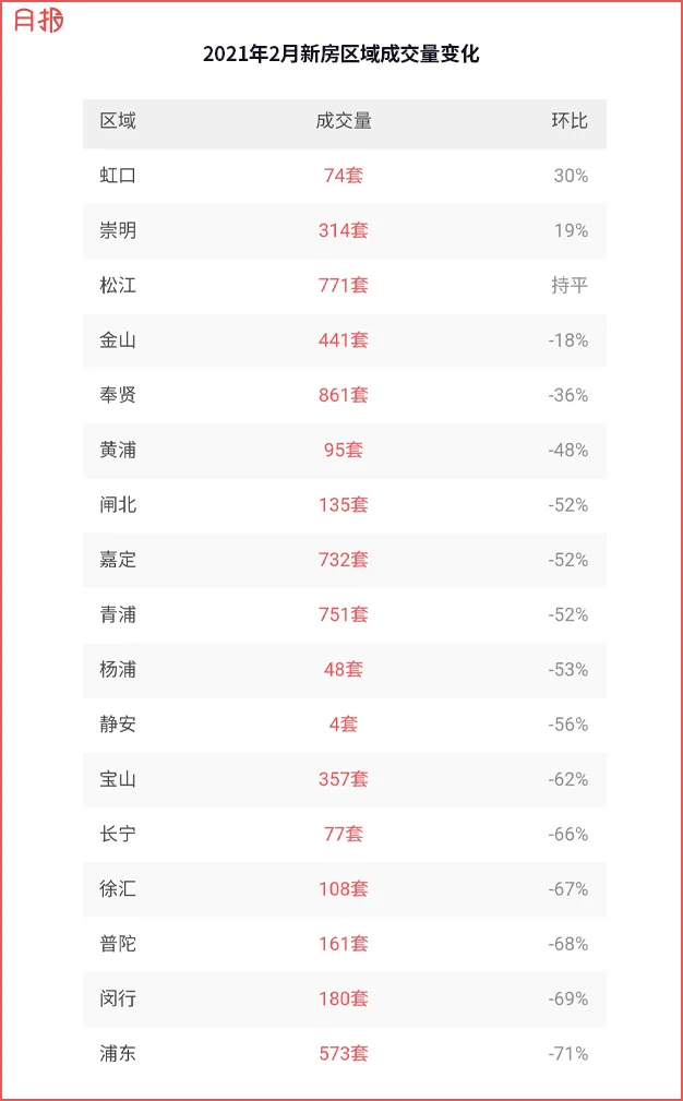 历来财大气粗的浦东尽管成交量达573套,但一向“本金池子”大,跌幅反而高达71%。