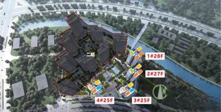 二期工程位于地块西南、西北处,涵盖5-12号楼。