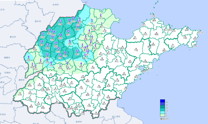 省气象台预计今天夜间到明天白天,半岛地区天气阴有中雨局部大雨转雨夹雪,鲁西北的东部和鲁中的东部地区天气阴有小雪转晴,其他地区天气多云转晴。明晨较低气温:鲁西北和鲁中山区-7℃左右,有冰冻;半岛地区0~2℃,有霜冻;其他地区-2℃左右,有冰冻。由于气温较低,鲁西北和鲁中地区有明显的积雪和道路结冰。鲁西北的东部、鲁中的北部、半岛地区和内陆湖面北风6~7级阵风8~9级,其他地区北风4~5级阵风6级减弱到3~4级,渤海、渤海海峡和黄海中部北风8~9级阵风10~11级,黄海北部南风6~7级阵风8级转北风8~9级阵风10~11级。山东省气象台7日16时继续发布寒潮黄色、海上大风黄色和道路结冰橙色预警信号。