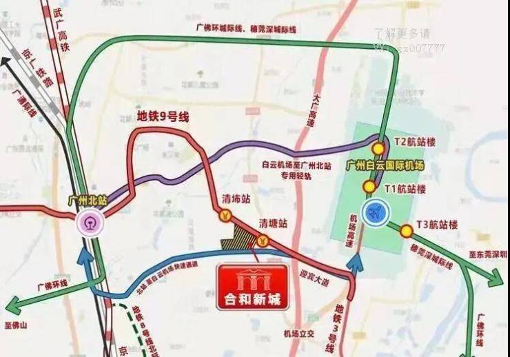 机场高速→花都北站出口→迎宾大道→合和新城;