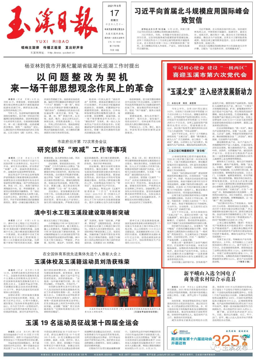 中国共产党玉溪市第六次代表大会即将召开,此次大会是在“两个一百年”奋斗目标历史交汇的关键节点召开的一次十分重要的会议,是全市政治生活中的一件大事,对全市推进“十四五”规划实施,建设好滇中崛起增长极、乡村振兴示范区、共同富裕示范区,谱写玉溪社会主义现代化建设新篇章具有重要意义。为进一步统一全市党员干部和各族群众思想,凝心聚力,为大会召开营造良好氛围,玉溪日报全媒体开设《牢记初心使命 建设“一极两区” 喜迎玉溪市第六次党代会》栏目,敬请关注。