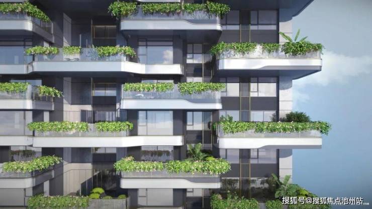 奇数楼层的户型与之垂直对应的偶数楼层的户型,它们的空中庭院均错开设置或不在同一个方向设置;在对应奇数层与偶数层空中庭院的上一层墙面所开设窗户的下口,设置一块用以挡住向下视线的外窗台板,使私密性得以保护。