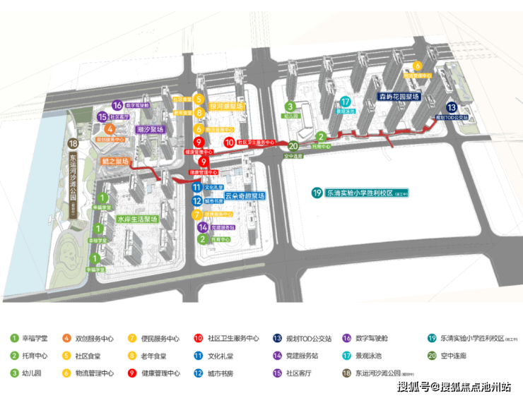 项目围绕“一心三化九场景”的顶层设计思路,通过场景整合优化,将原本分散的场景布置化整为零,形成四大功能核心:即TOD服务中心、邻里中心、文化中心、教育中心,以此打造独具特色性的九大场景。