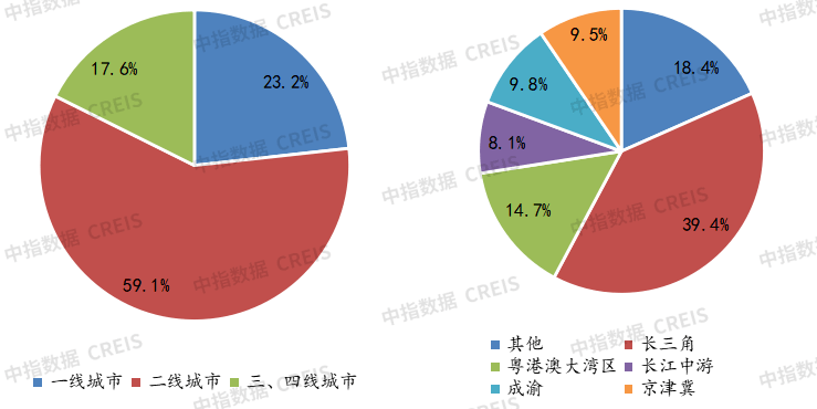 二线城市房企拿地占比较高,城市群中长三角居首位。从布局城市等级来看,50家代表房企2022年1-9月在二线城市的投资面积占比较高,为59.1%。从布局区域来看,企业热衷于在长三角拿地,占比达到39.4%。