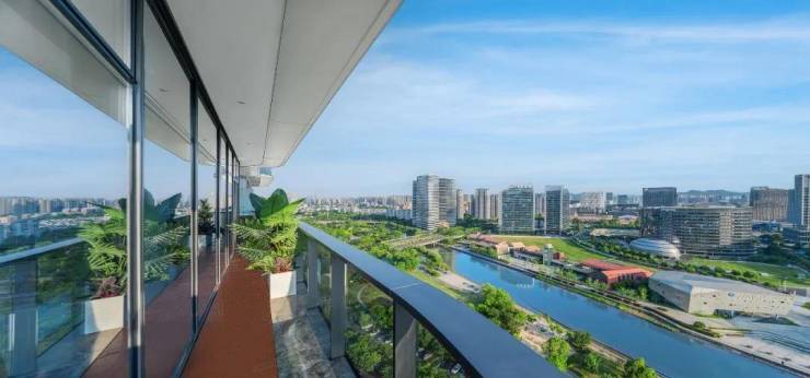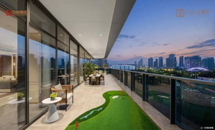 中南江一云境在建筑设计上同样独具匠心。项目采用全景围合设计,每户拥有约360-1080㎡的墅境大平层,空间开阔明亮,布局合理。长约50米的U形环幕阳台,让居住者在家中即可尽享钱塘江的壮阔景色和城市的繁华景象