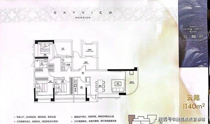 140㎡南向4房2厅2卫:六开间超南,超17米南向面宽,四面采光单边户