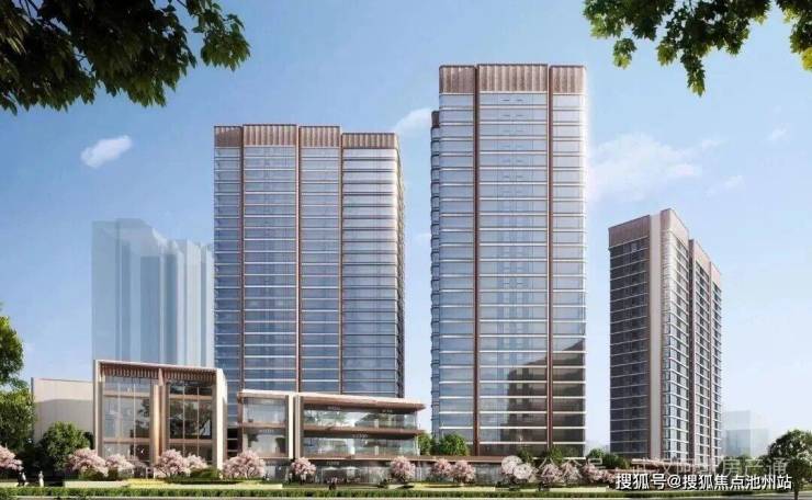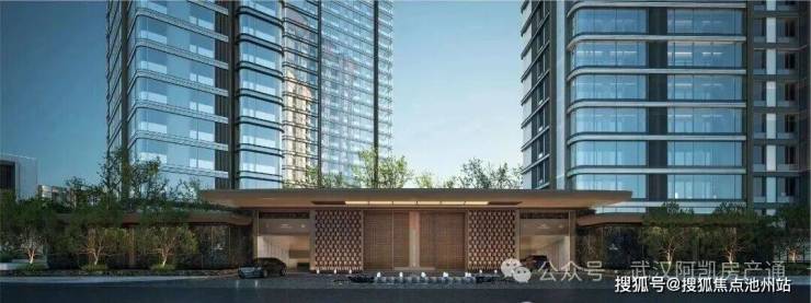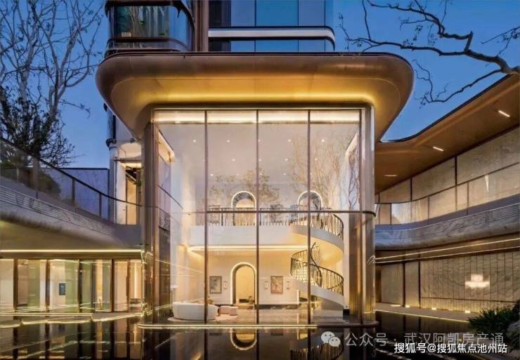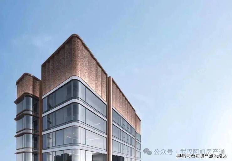 项目的建筑立面是非常有辨识度的,整体采用“鎏金冠冕”公建化设计,造型灵感来源于黄鹤楼的飞檐和长江的风帆。