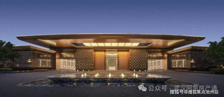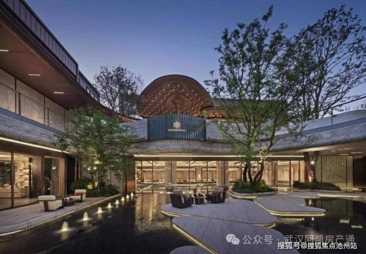 入户三重礼序——拼花步道招财纳福,景墙融黄鹤楼窗棱与钱纹吉意,天幕寓意着光明吉祥,尊贵高雅,将归家行径升华为文化朝圣。