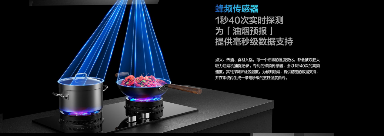 尤其是对于中式烹饪而言,由于爆炒、煎炸烹煮等方式居多,所以油烟的问题也成为了大家的困扰。而老板电器将毫秒级的蜂频传感器运用到老板8235S油烟机之上,通过每秒40次的探测形成烹饪温度曲线,探测到灶具区域温度剧烈变化时能够自动提升吸力,在食材入锅的瞬间先发制“烟”,通过1秒控烟彻底解决中式烹饪中油烟逃逸的难题。除了蜂频传感器这个黑科技之外,搭载了每小时12万转数字电机的双烟腔则是老板8235S油烟机的核心,通过双腔垂直吸排的设计,不但缩短了烟腔与烟源之间约20%的距离,同时也增加的油烟机负压区域将近30%的面积,即便双锅同时爆炒,老板8235S油烟机也能保持厨房的空气清新。而且在油烟机的排名之中,这款老板8235S油烟机的智能的交互模式能够自动将动力分配至工作一侧的烟腔,另一侧半开来辅助净烟,既杜绝了油烟侧逃,又有效地节省了能源,可谓一举两得。