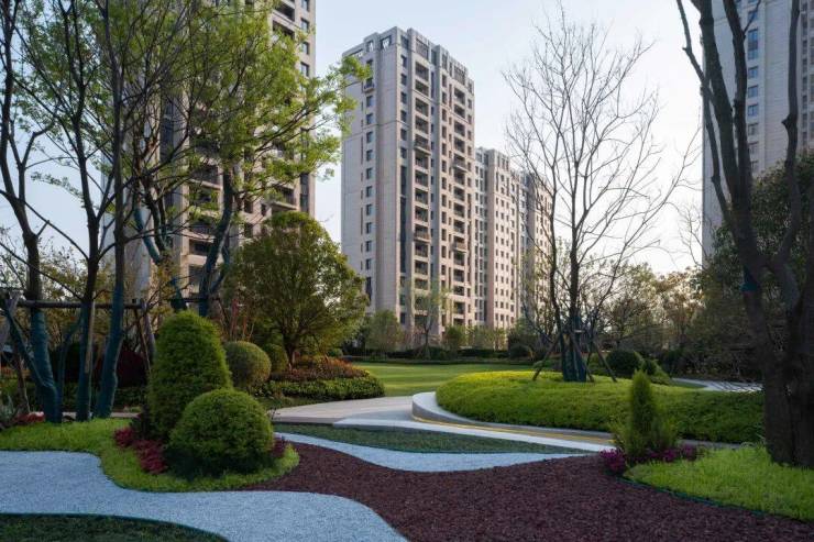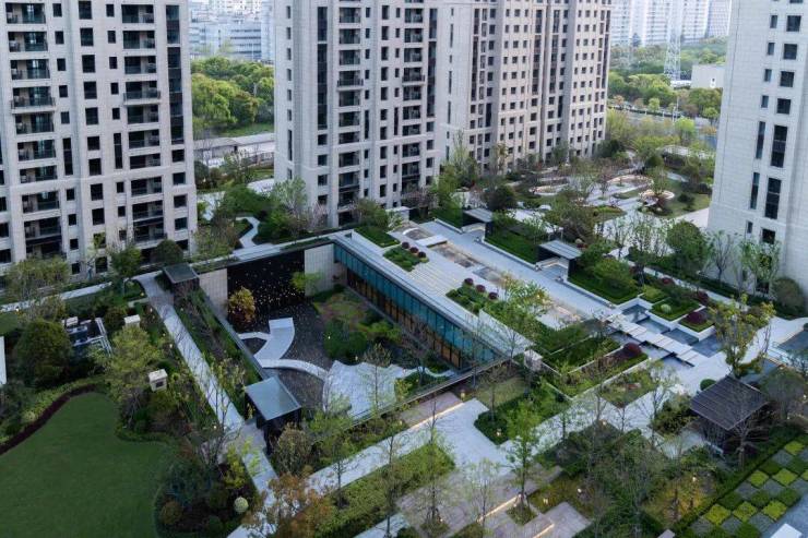 项目外立面均采用石材干挂+铝板,在园林方面,项目和古北中央公园一样也是由奥雅园林打造的,总绿化面积为约1.29万方,包括了中央休闲草坪花园、中央会客厅、樱花大道与乌桕林、儿童娱乐区等。