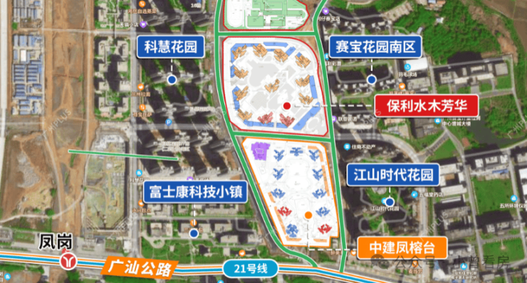 保利水木芳华项目通勤优势十足,离地铁21号线凤岗站(快线站)仅约800米,即使是步行,也能轻松抵达。