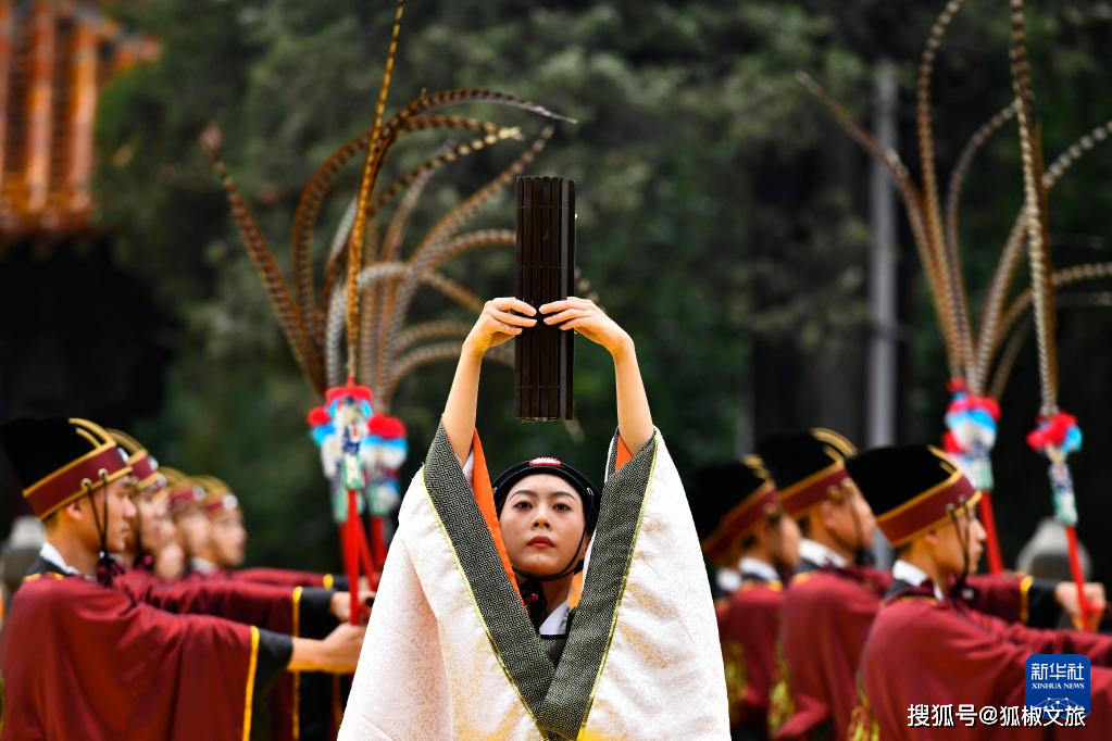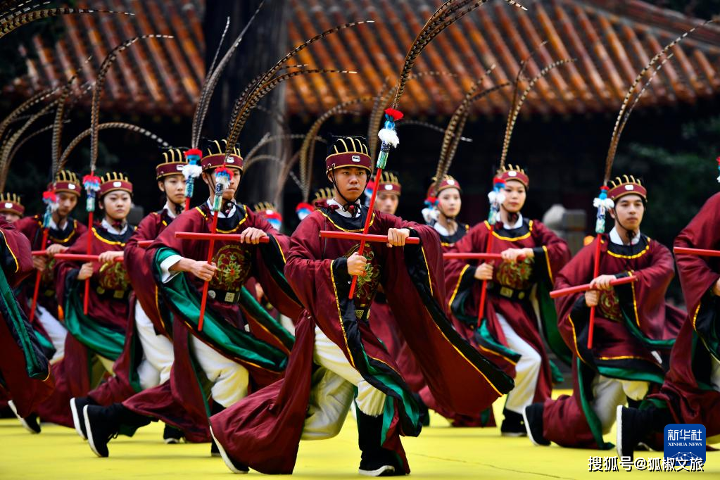 9月28日,在辛丑年祭孔大典上,工作人员起舞乐奏《万世师表》。新华社记者 郭绪雷 摄