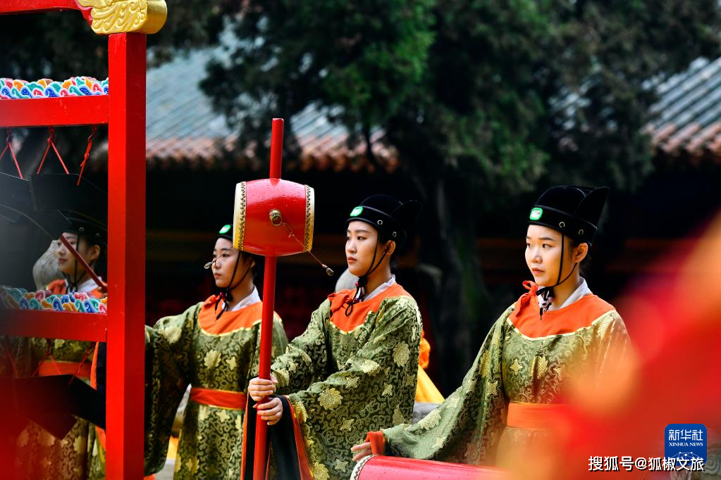 9月28日,在辛丑年祭孔大典上,工作人员乐奏《万世师表》。新华社记者 郭绪雷 摄