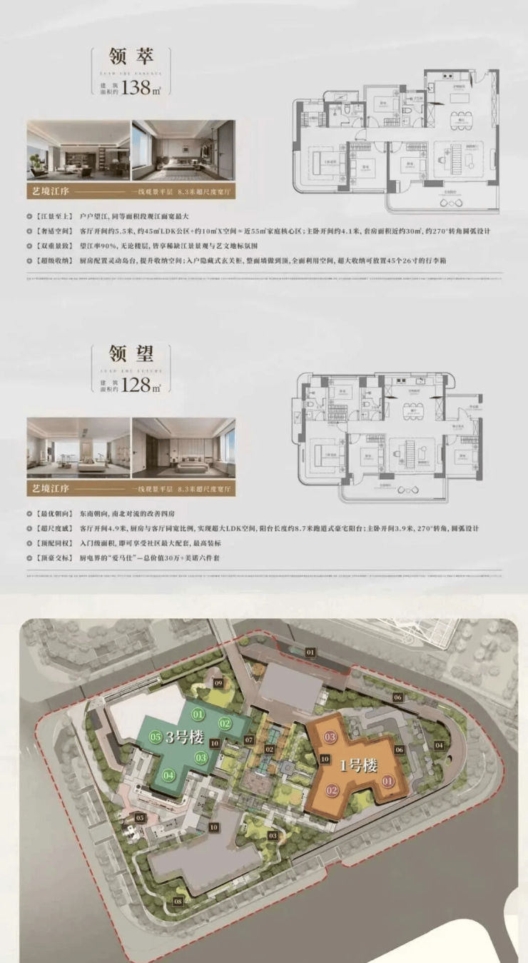 据了解,「尚滨道」预计首推1、3栋,3栋主打128-138㎡,1栋主打168-238㎡大平层,使用率超100%,3T户。小户型吹风5.2-6.8万/㎡,大平层单价8万/㎡起步。